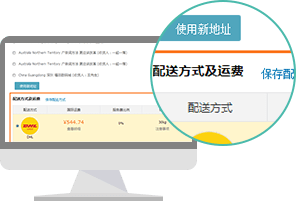 填写收货人信息、配送方式并支付国际运费